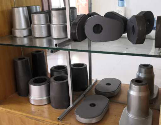 滑板是以氧化鋁原料如板狀剛玉、電熔剛玉、莫來石、特級(jí)礬土等為主要原料,引入碳素材料如磷片石墨、碳黑、瀝青、活性碳等,并添加其它少量材料如金屬硅、金屬鋁、碳化硅、碳化硼等,以酚醛樹脂作結(jié)合劑,經(jīng)配料、混合,高壓成型,高溫處理,再經(jīng)過加工而成。該產(chǎn)品強(qiáng)度較好,熱震穩(wěn)定性好,抗侵蝕,耐沖刷,能滿足不同鋼種的使用要求。